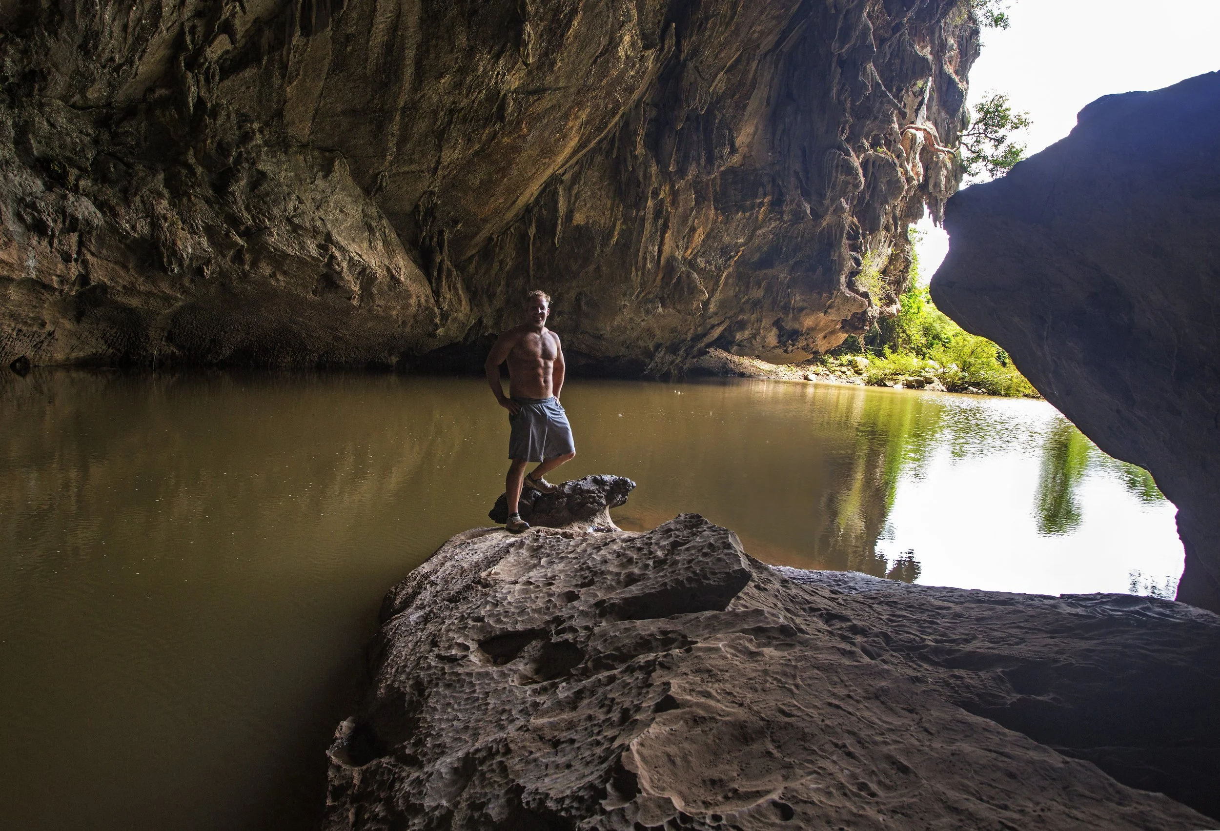 But you know what, why not go cave swimming? I ditched all my stuff and went off with just my swimsuit and headlamp. It’s not like it was all swimming, some parts were dry sand, sometimes it was knee deep water, and only some parts you actually had to paddle. This was quite exhilarating. Swimming solo into the deep darkness of a huge cave with only a torch gets your heart beating a bit! Although for most of the time I could see the small speck of light behind me from the mouth of the cave. Once I lost that and it was completely dark on all sides it got pretty creepy. Not like fun creepy, but scary creepy. And I’m not a total idiot, if something happened to my torch or it fell in the water it would be really bad, so I didn’t go too much further after I couldn’t see the entrance. But that was really fun! And it really is pretty wild that you can even do something like that as a random tourist. Laos is great.