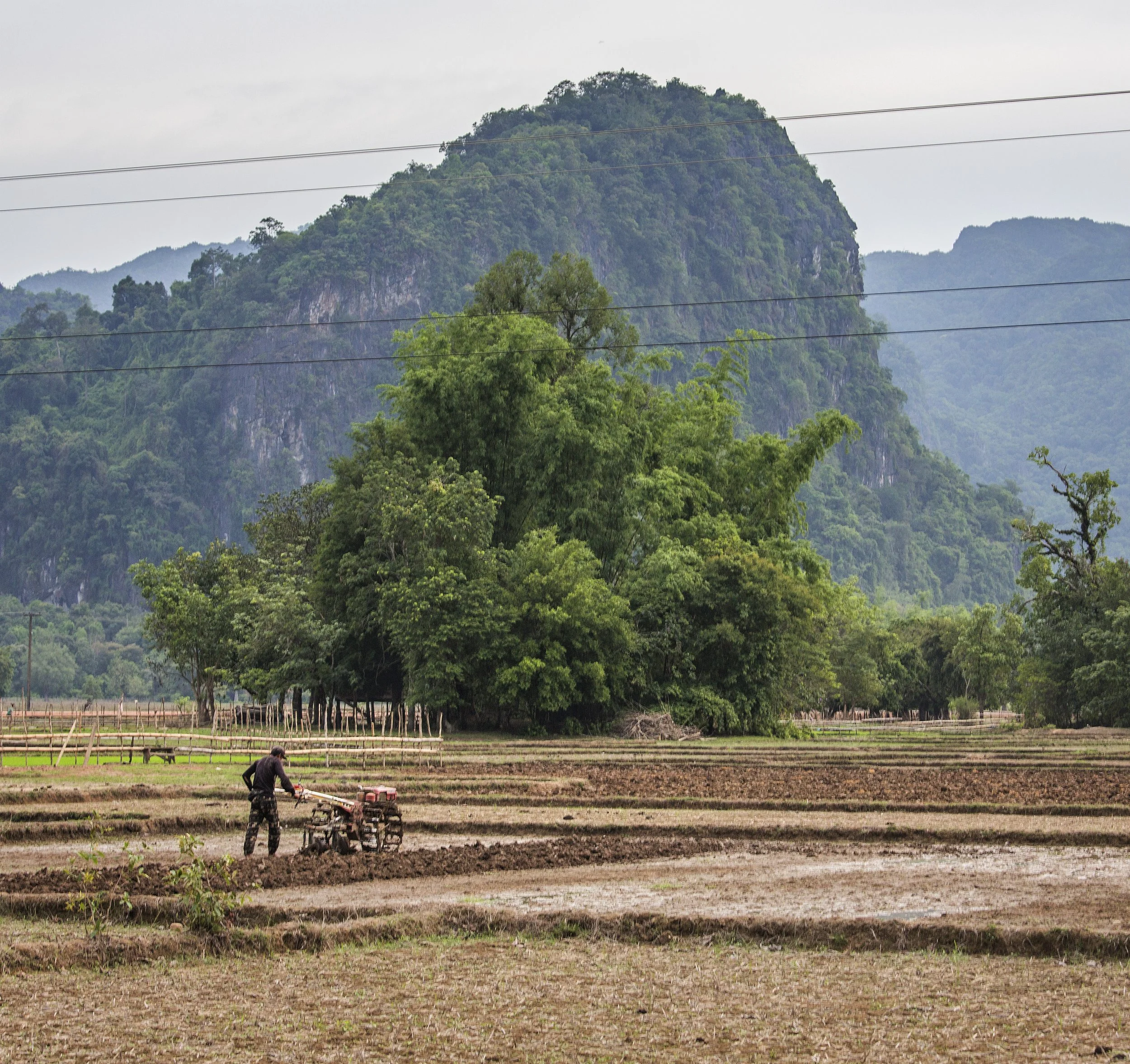 So the next day I was off on the bike, cloudy in the morning like usual. The first part of the loop is some of the best scenery on the whole trip, driving through the karsts. Although there is a lot of truck traffic going to/from Vietnam, with a lot of big potholes, so the actual riding can be a bit unpleasant at times. The big trucks have no regard for bikes, you’d better get to the shoulder of the road! And then you go through a potholed section and pass them up, only for them to come roaring back on your ass again.