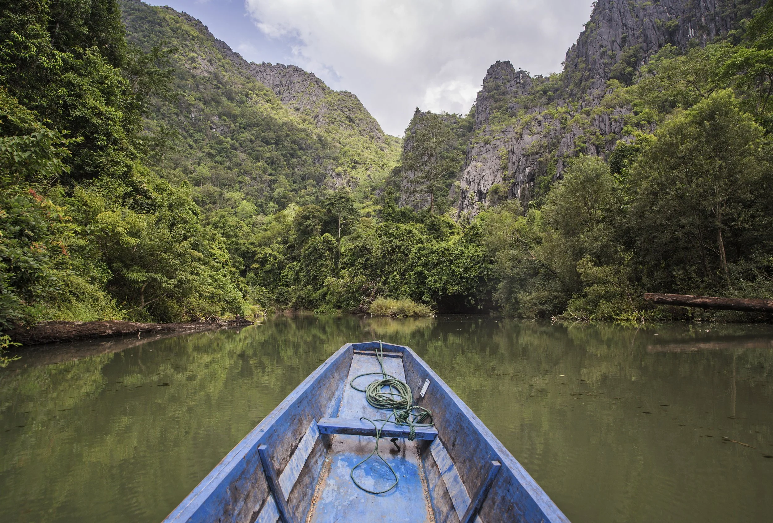 He starts shaking the boat as hard as he can. It’s not moving. I try and lift as well, but I’m pretty useless being in the water. He’s yelling and grunting, but it’s really wedged in there good. These wooden boats are heavy! And this limestone is very grippy. We’re getting nowhere. He starts making whistles for help, but c’mon bro, that’s not doing anything. So we end up just having to sit there and wait for someone to come by. I swim a bit and find a shallow sandy spot to stand. But I’m really not worried at all. I’m actually feeling kinda giddy, because if we had capsized, we would have been fucked. Really fucked. The boat driver more than me presumably. Forget the electronics, if we were in the water with both our lights out, complete darkness, that’s nightmare material. And if the boat driver doesn’t know how to swim, does he drown? Do I try to help him? Can I even do anything if I can’t see anything? Wild to think about. But now, the boat is intact, nobody is hurt, everything is fine!! This is the biggest tourist attraction in central Laos, who knows when the next boat is coming, but there’s going to be boats coming!