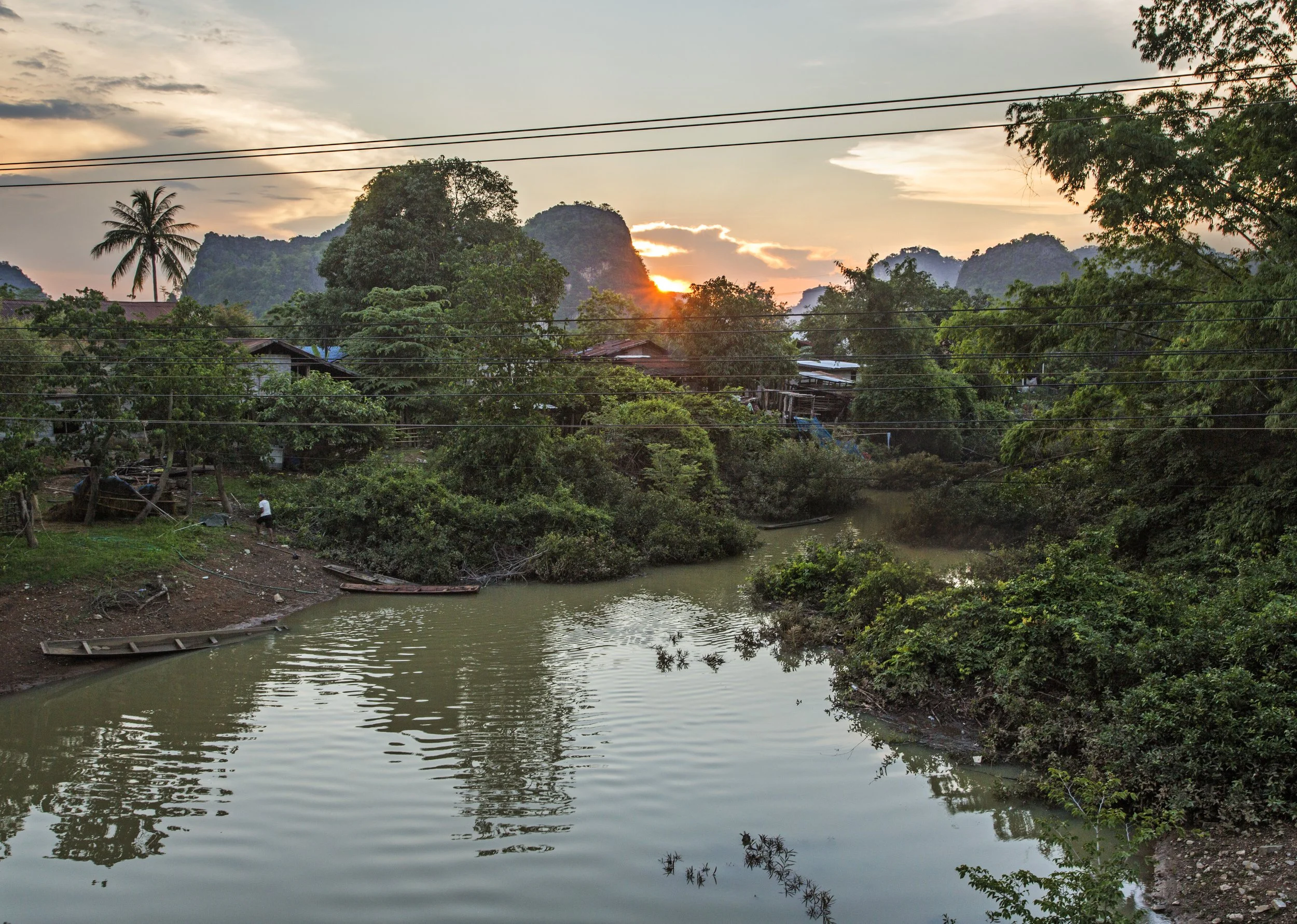 From here I had the option to take it slow, and spend a night somewhere else on the loop before driving back to Thakhek the next day, or just spend the rest of the day going straight there. I felt like I had enough excitement for the trip, so back to Thakhek it was. 60km in the countryside, and then the last 100km of the trip were all on the highway – the new, and not-potholed highway, which is a real treat when you’re in Laos, but not exactly very exciting to write about or to take photos. So that was about all for the Thakhek loop. I was back in my hotel bed by late afternoon. With time to spare to go find some sunset photos, yay. So overall, a pretty successful trip! No injuries, no illness, no bike damage, no extra incurred expenses, just one 45 minute river delay. And here’s some photos of my last evening in Thakhek, err just outside of Thakhek.