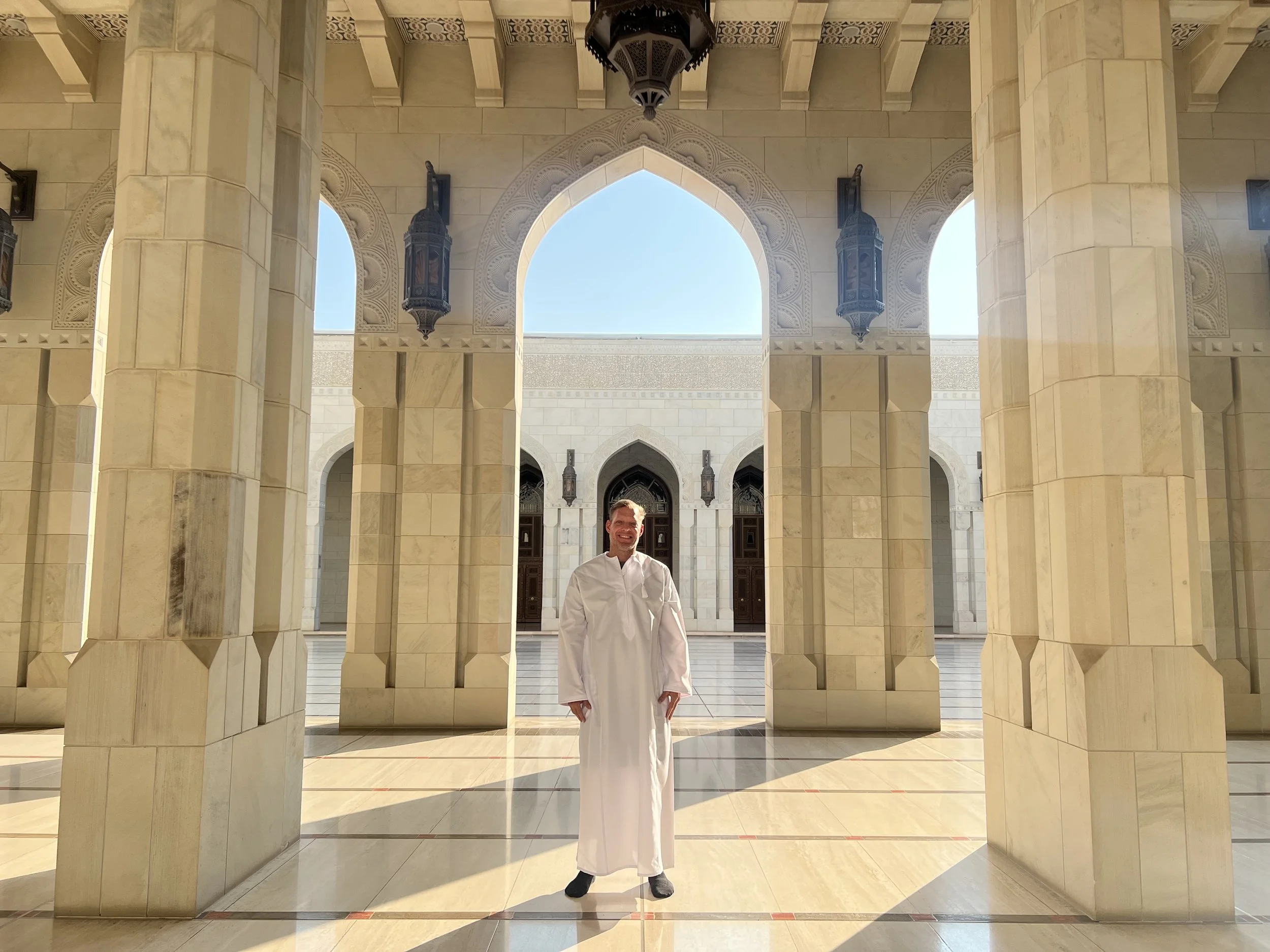 Muscat has quite a different feel from the other cities I’ve been to! For one thing, it’s got quite a bit smaller population, 1.7 million compared the 4 million of Abu Dhabi and Dubai. There’s only 5 million people in the whole country, (and over 50% are actual Omani). The interesting thing about Muscat is there are basically no skyscrapers. The rule for almost all buildings is that they are capped at five stories! How crazy is that? And most buildings are mandated to be painted white to keep a consistent cultural, traditional aesthetic. The lack up building upwards means the city is super spread out, so it makes it somewhat difficult deciding where to stay, because everything is so far away from each other and the bus system is not good.