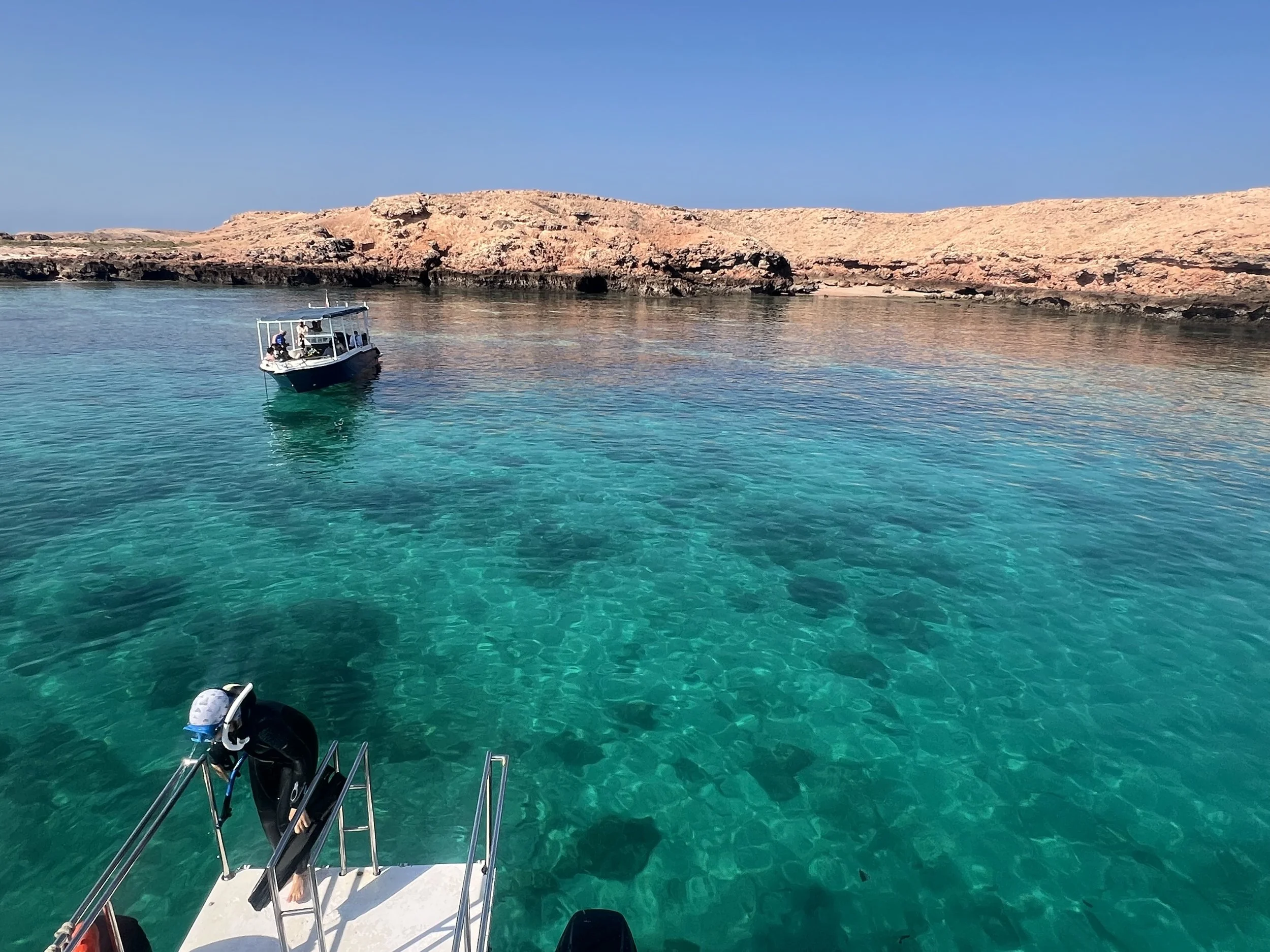 It was about an hour to get out to the Daymaniyat Islands, which is cluster of islands, and they were very pretty. Well, the water around them was very pretty, the islands were mostly brown and rocky outcroppings. We did two snorkel spots with an ‘beach’ break in between, and a very nice lunch set up with pita and kebabs and hummus and labneh and vegetables and lots of stuff. I think some people were just there for the lunch! Then we got in round two of snorkeling. It was good, lots of turtles the first trip and then a few black tipped reef sharks on the second. No underwater photos though…