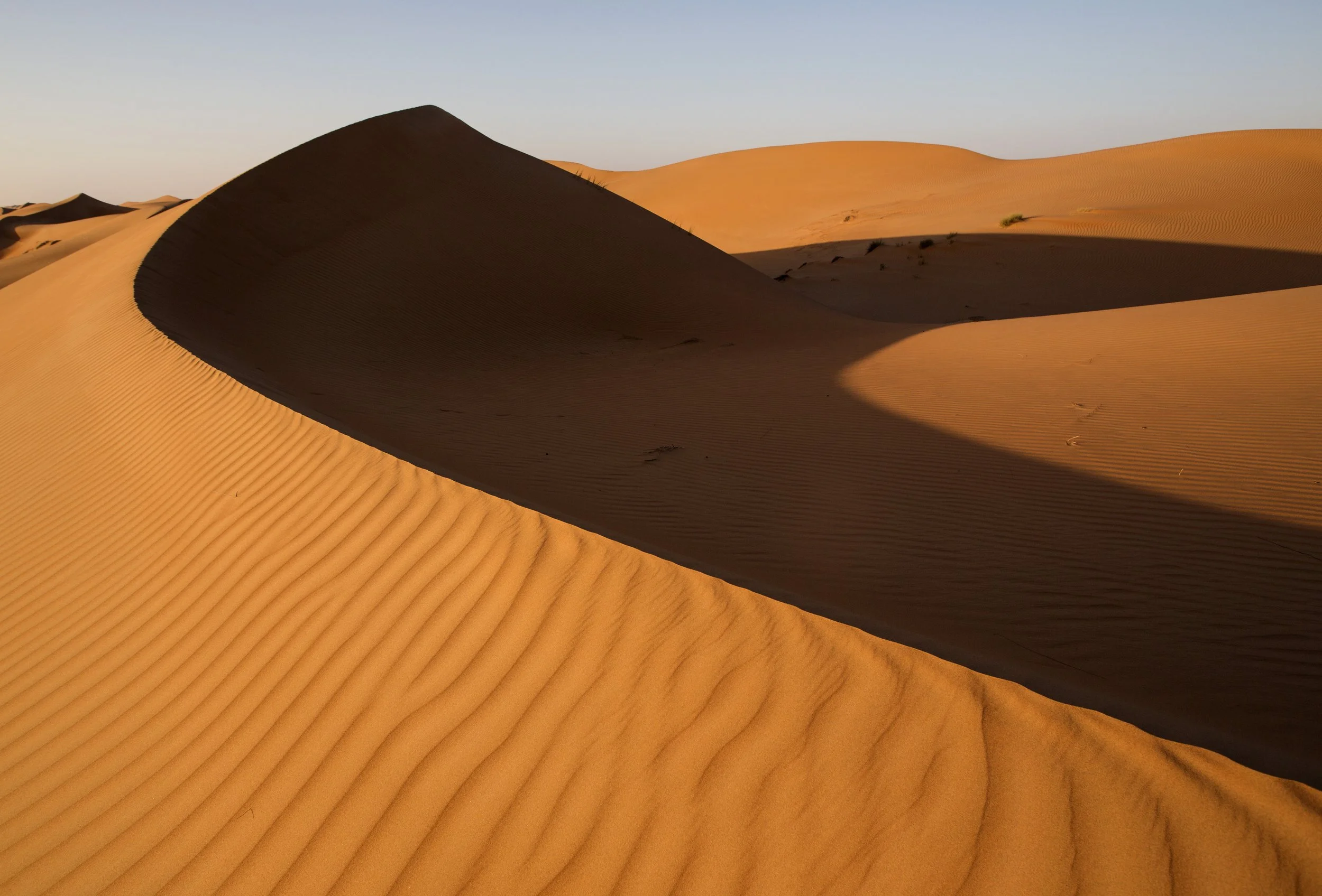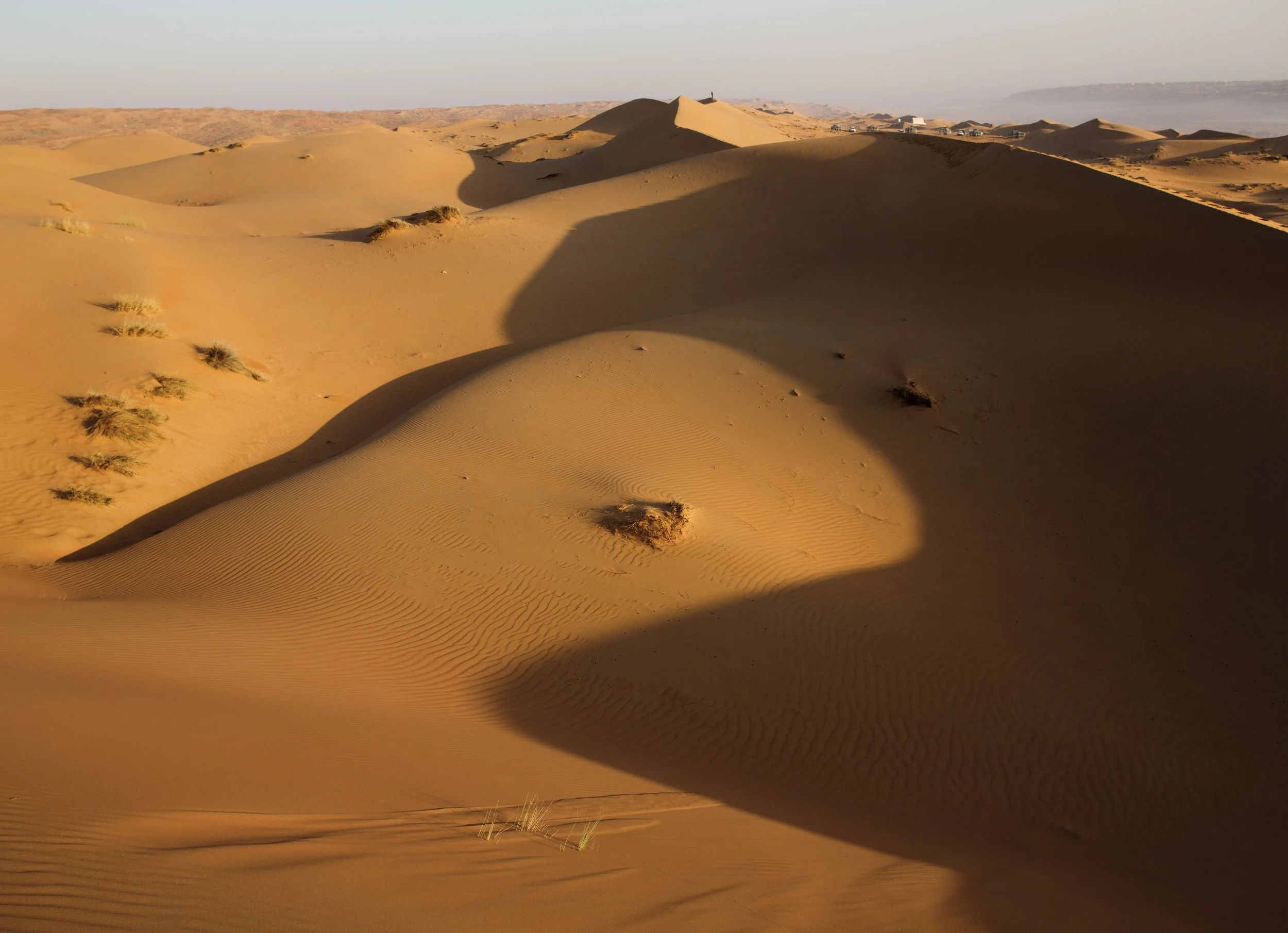 In the big shaded platform I met some of the guests, an Austrian couple and Dutch/Moroccan couple who were both friendly. The Dutch/Moroccan couple was a quantum physicist and PHD in climate science. Like come on! The Austrian couple had booked two nights, which they had kind of regretted, as there really is nothing to do all day. Sand dunes are good for one sunset and one sunrise, imo, that’s all you need! I had some time to read my book before sunset, as I didn’t sign up for either of the two activities, dune buggy or camel ride. Spending 30 minutes on a camel in India was enough to know that I don’t really need to be on a camel again. And I was particularly interested in reading this book (Celestial Bodies) as it was the first book in Arabic to win the Man Booker prize, and it’s by an Omani author set in Oman. Eventually around sunset it was off to hike around the dunes and take some photos. I don’t get many chances to do dune photography, but it is pretty fun, the play of light and shadows gives many opportunities for interesting photo compositions! But the light is only right for a short window of time before the sun sets. Or right after it rises.