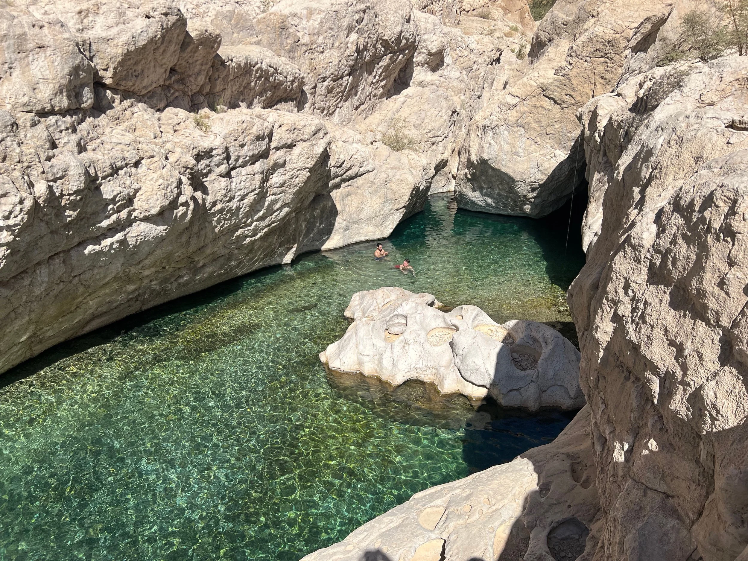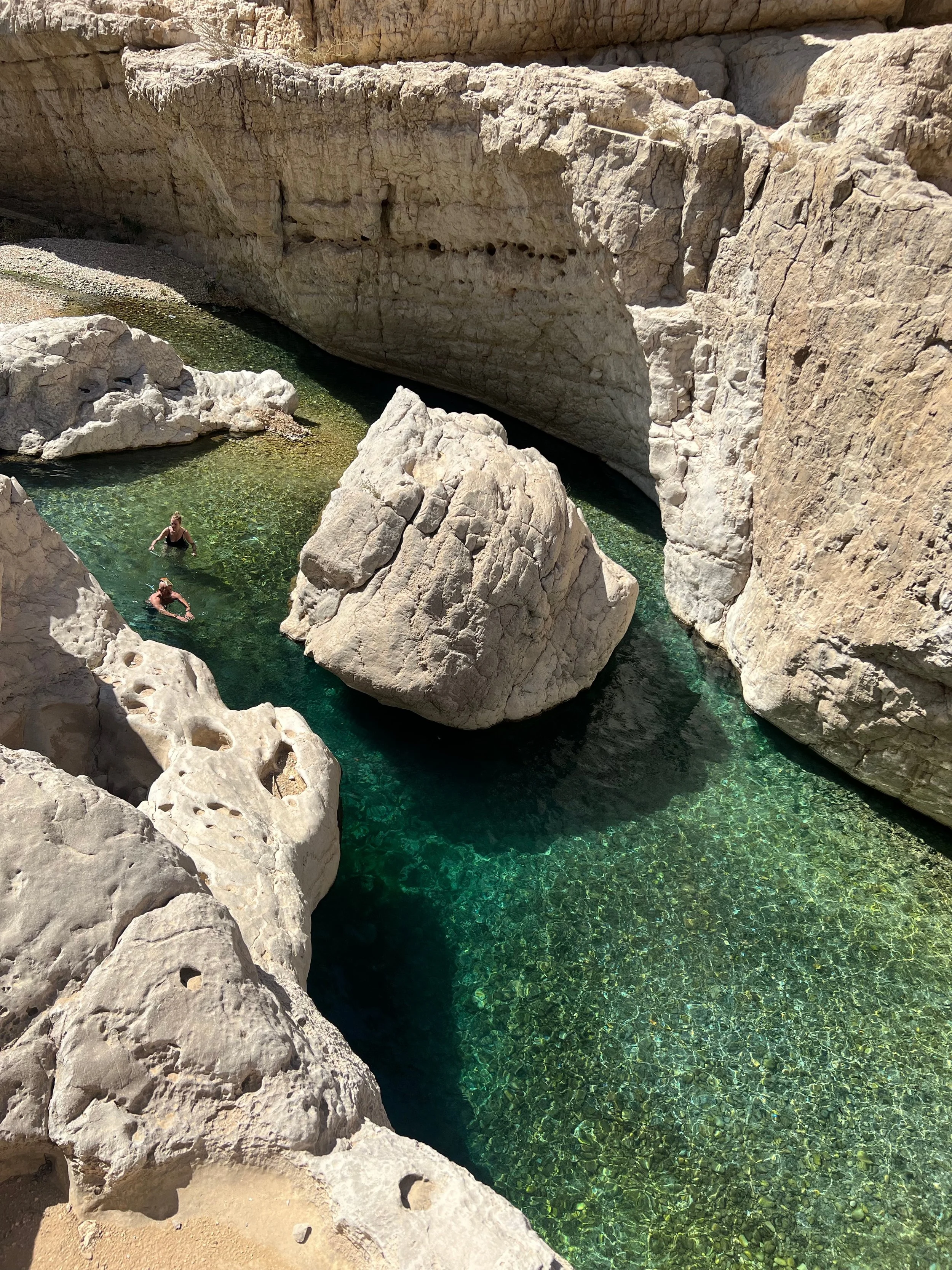 Of course having to swim through a canyon means you need to leave your stuff behind, so people who were well prepared brought dry bags along for the swim. Me and Wail didn’t want to leave all our stuff behind, an overabundance of caution perhaps, as theft like this isn’t really a thing in Oman. But just in case, we just went through the canyon one by one. The whole place was a lot of fun and I can see why it’s on everyone’s tourist itinerary. Great spot to hang out for a few hours. On the way back we lost our return trip boat tickets and the guy wanted us to pay again, but Wail said a few words in Arabic and problem solved. Very nice having an Arabic speaker around.