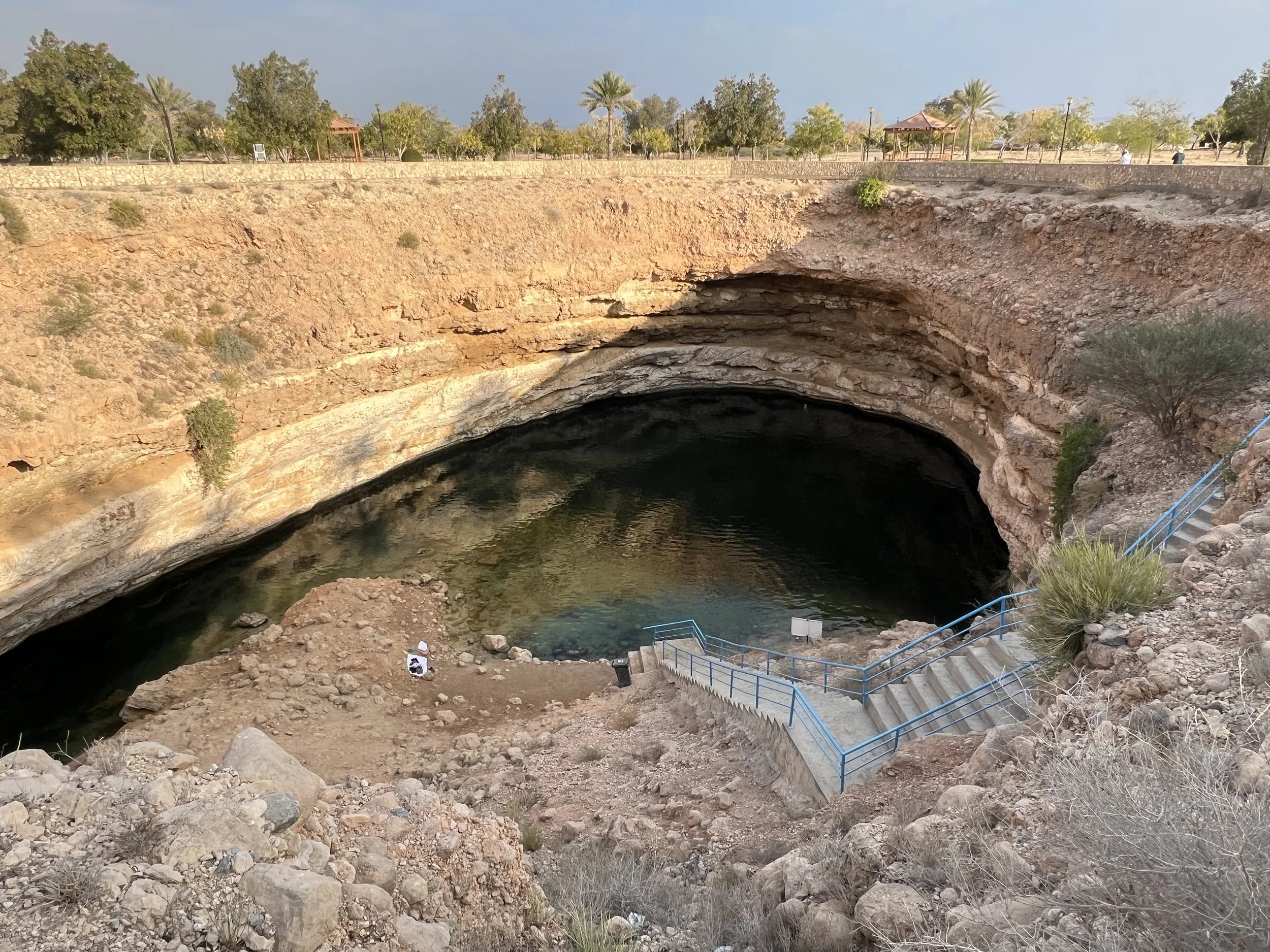 First stop was the Bimmah Sinkhole, which looks pretty much like you’d expect, a big hole in the ground with water in it. We were the second ones there and after some debate, decided to go for a swim, as it’s cool to have it all to yourselves and it would probably wake us up a bit. Wail also carries around a coffee thermos so it was the perfect coffee spot.
