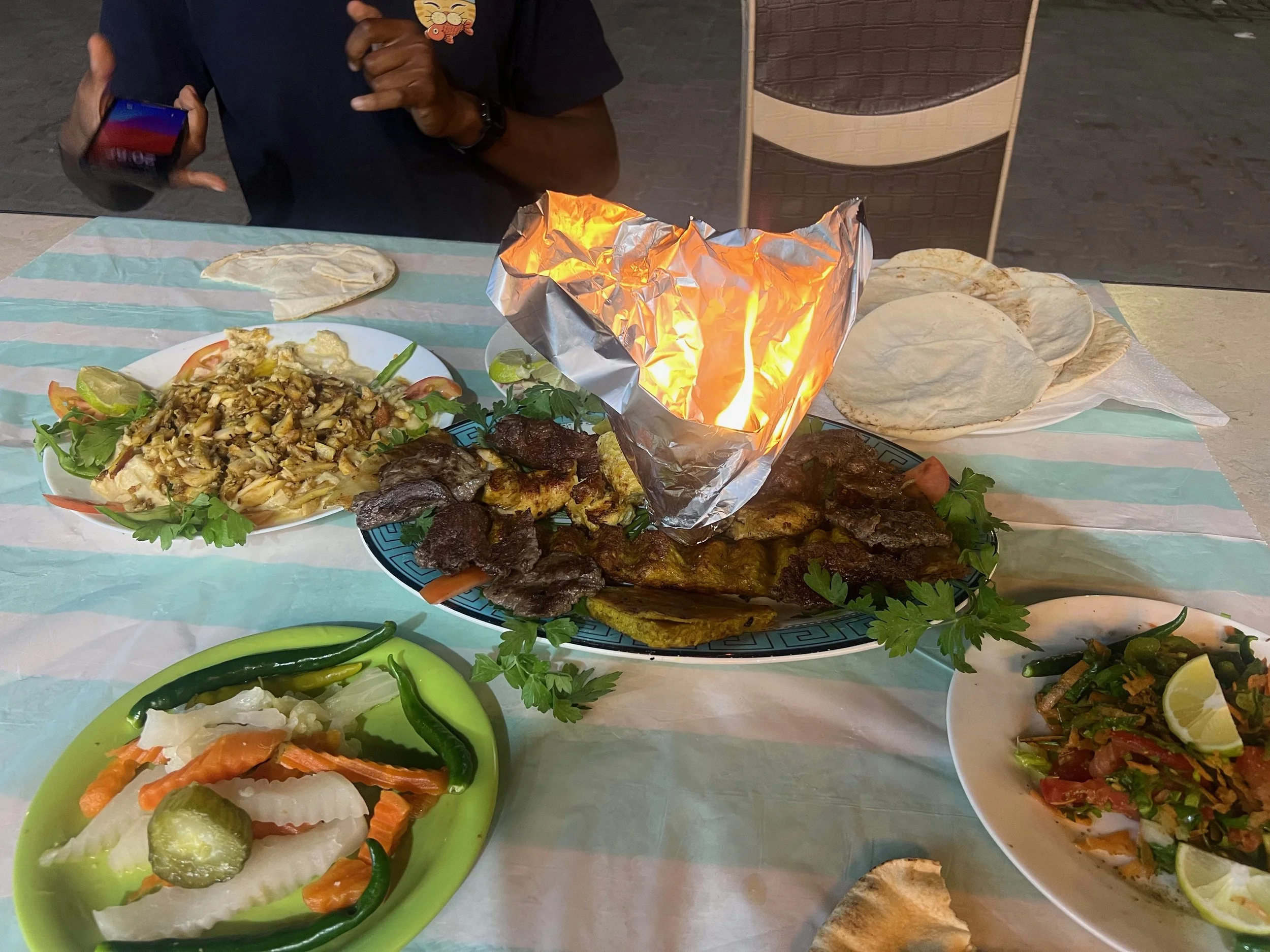 After that we went to a local shisha place for a bit and then found something to eat. We went to, I believe an Egyptian run place and split the good ole, trusty standby – the mixed grill. Before we ordered Wail was asking the owner a bunch of questions about the food, and I guess the owner didn’t like that much, and told him he was personally insulted. Which was interesting to me because I don’t think I’ve ever had a conversation at a restaurant which invoked such strong feelings over asking about food. Or at least having those feeling said out loud. We’ll chalk it up to cultural differences! Wail went to apologize after dinner haha.